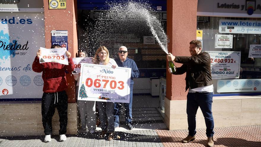 El primer premio de la Lotería del Niño ha dejado una huella en Málaga, repartiendo la suerte en varios puntos del territorio. El 06703 se ha vendido en seis administraciones de la provincia Plaza de la Constitución, 4 (Riogordo); Duque de Rivas, 2 Lotería La Piedad (Málaga capital); Juan Valdés, 20 (Málaga); Avenida de Andalucía, 85 (Torre del Mar); Catapilco, 3 (Málaga) y en Plaza del Lido, Conjunto Los Jazmines (Torremolinos).