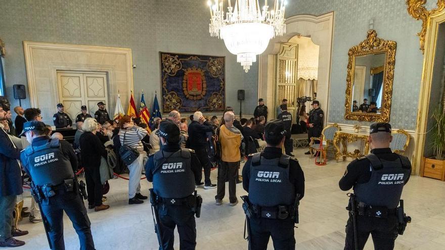 La polémica sobre la promoción de viviendas protegidas de Les Naus ha llevado este jueves a vecinos, representantes vecinales y sindicatos a concentrarse frente al Ayuntamiento de Alicante. La protesta coincidió con el pleno extraordinario convocado a petición de la izquierda para debatir las adjudicaciones de inmuebles vinculadas a miembros del Consistorio, entre ellos la exconcejala de Urbanismo, Rocío Gómez, familiares de altos cargos y un arquitecto municipal, según desveló INFORMACIÓN.