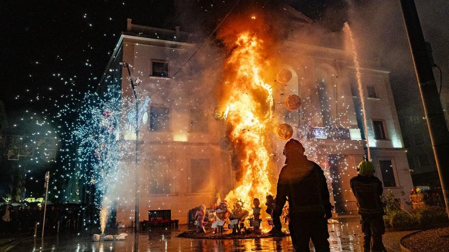 Ni la lluvia frena la cremà de la hoguera "Nàixer en Nadal"