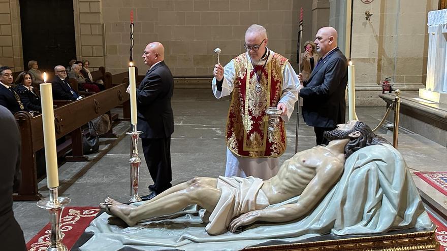La ciudad de Alicante vivió ayer un acto de especial relevancia cultural, patrimonial y espiritual con motivo de la bendición y presentación de la restauración del Cristo Yacente del Santo Sepulcro, una de las imágenes más emblemáticas de la Semana Santa alicantina y parte esencial del patrimonio histórico y emocional de la ciudad.