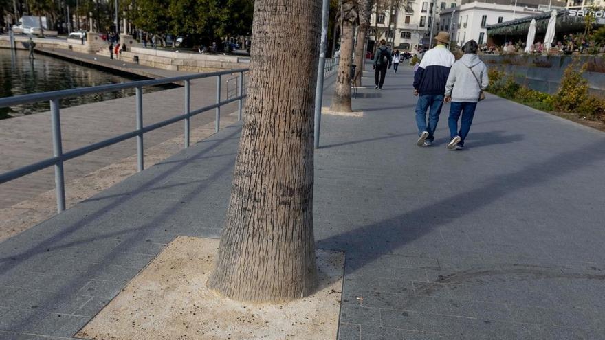 El aspecto de varios alcorques en el paseo del puerto de Alicante ha llamado la atención de quienes transitan por la zona. El hueco habitual alrededor del tronco aparece cubierto por una capa continua, a ras del pavimento. A simple vista, el acabado puede interpretarse como un sellado y abre un debate recurrente en jardinería urbana: ¿hasta qué punto se puede “cerrar” un alcorque sin comprometer la salud de la palmeras?