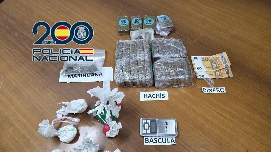 Agentes de la Policía Nacional han detenido en Alicante a dos varones de 30 y 32 años acusados de tráfico de drogas en un punto negro de venta de sustancias estupefacientes de la zona centro. El operativo policial llevado a cabo ha permitido incautar cerca de tres kilos de diversas sustancias estupefacientes, como cocaína, hachís y marihuana, y se ha conseguido erradicar un importante punto de venta de drogas en Alicante.