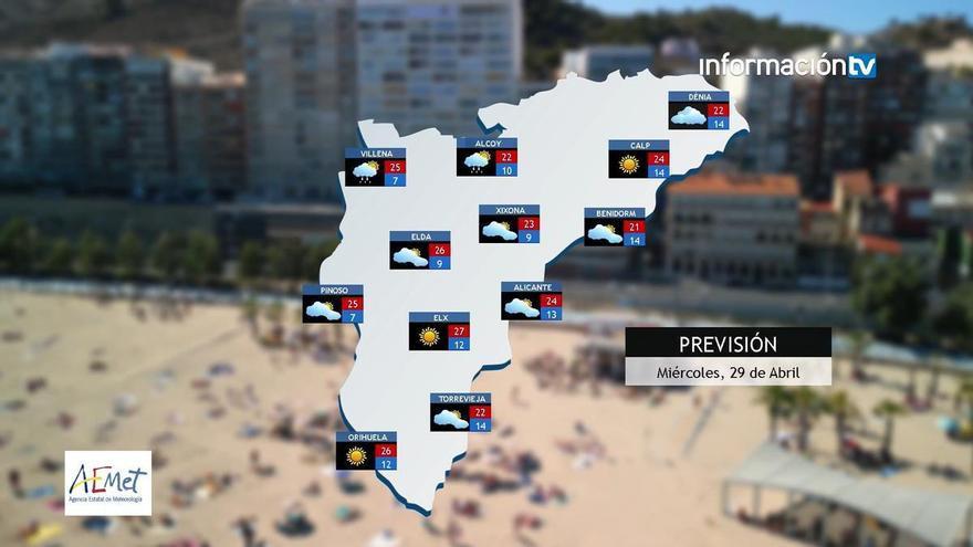La Agencia Estatal de Meteorología (AEMET) lo va confirmando en el parte de cada día. No será un puente de 1 de mayo de sol y playa, el Día Internacional de los Trabajadores lloverá y el cielo estará muy cubierto, previsión que se repetirá a intervalos estos días y que seguirá todo el fin de semana -aunque el sábado las lluvias se esperan más escasas-. En Alicante ciudad las primeras precipitaciones caerán el jueves por la tarde y, a partir de entonces, empezará el fin de semana lluvioso.