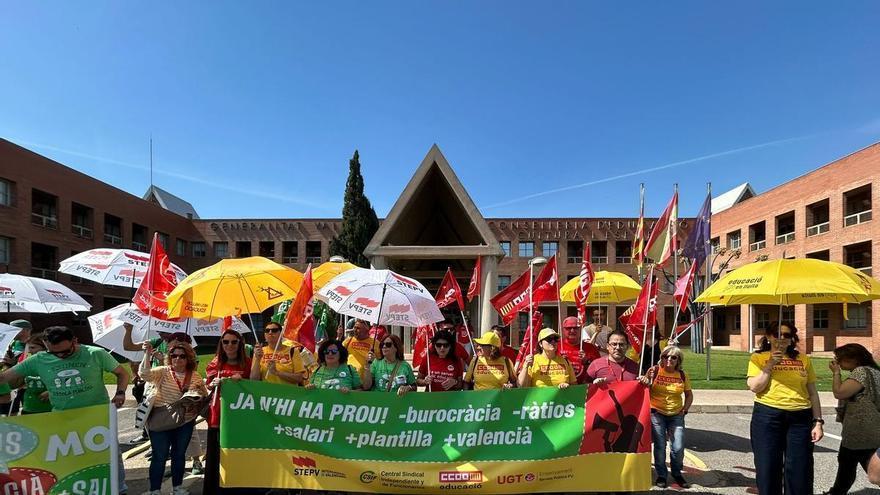 "Hemos salido igual que hemos entrado. El único compromiso es que están reuniéndose con Hacienda, trasladándoles las propuestas sindicales, pero no tenemos más información de la que conocemos. No sabemos cuándo tendrán la solución, suponemos que en el otoño como nos dijeron la pasada semana". Así resumió el coordinador del STEPV, Marc Candela, el último encuentro, celebrado este lunes, entre la Conselleria de Educación y los representantes sindicales para negociar la subida salarial al profesorado. Acto seguido sonaron pitidos y un mensaje claro: "huelga indefinida". Ahora la fórmula en la que se sustanciará el parón está por definirse.