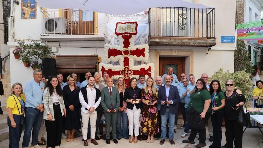 El barrio de Santa Cruz se vistió de gala este jueves para rendir homenaje a la ciudad de Caravaca de la Cruz, que se convirtió en la protagonista de la celebración de las Cruces de Mayo. La penya Càntara dedicó este año su cruz situada en la calle San Rafael, de tres metros de altura y adornada con más de 4.500 claveles, a la localidad de Caravaca de la Cruz en un acto acto que marcó el inicio de un fin de semana de celebración en el barrio. De esta forma, la penya, retoma este año la tradición de dedicar su cruz a una localidad española, una iniciativa que se había suspendido el año anterior debido al luto por el fallecimiento de Pedro Luis Sirvent, miembro destacado de la asociación.