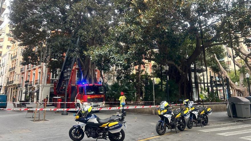 Un inesperado sobresalto ha sorprendido este viernes en el Portal de Elche en Alicante. El servicio de Zonas Verdes de Brota Alicante detectó durante una revisión rutinaria, motivada según fuentes municipales por las fuertes rachas de viento de los últimos días, que una rama de uno de los ficus presentaba riesgo de rotura.