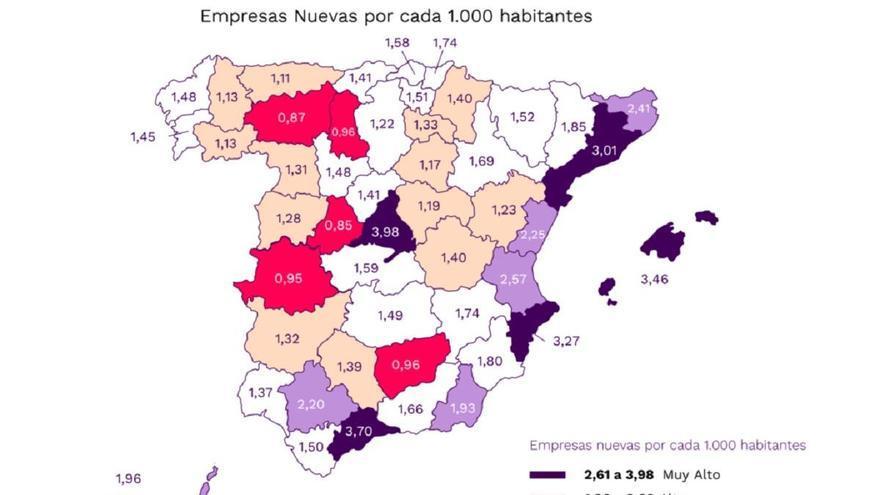 La creación de nuevas empresas en España sigue concentrada, por volumen, en los grandes polos económicos que representan Madrid y Barcelona, que mantienen su posición gracias a su tamaño económico, su capacidad de atracción de inversión y un ecosistema empresarial consolidado. Sin embargo, el análisis sobre dinamismo emprendedor en relación con el nivel población apunta a otros focos de dinamismo. Ese es el caso de Málaga, que registró en 2025 un índice de 3,7 nuevas empresas por cada mil habitantes, una cifra que la coloca como la segunda de España en este apartado, sólo superada por Madrid, que presenta 4 firmas por cada mil habitantes.