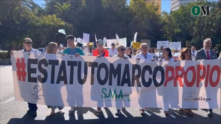Una marea de batas blancas ha invadido el Centro de Málaga en una nueva jornada de huelga de médicos. Al cántico de "No es vocación es explotación", "No quiero seguir trabajando sin dormir" o "Médico explotado paciente maltratado", cerca de un millar de facultativos han cortado este viernes el tráfico del Paseo del Parque y han marchado hasta la Plaza de la Marina para exigir un estatuto propio.Fotos de la manifestación de médicos en Málaga contra el Estatuto Marco