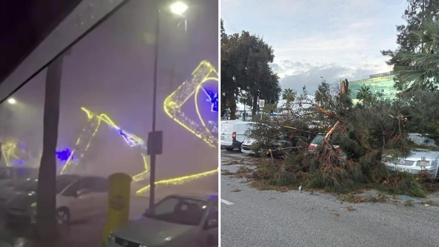 Un tornado causa importantes destrozos en Mijas: cae su alumbrado navideño y numerosos árboles