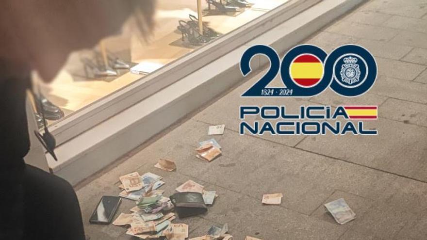 La Policía Nacional ha detenido en Alicante a un varón de 46 años por un robo con violencia sufrido por una mujer que fue agredida para robarle de un tirón un bolso con 5.800 euros y otras pertenencias, que fueron recuperadas por los agentes. El tironero fue perseguido a la carrera por la Policía y en la huida se le fueron cayendo billetes del bolso sustraído.