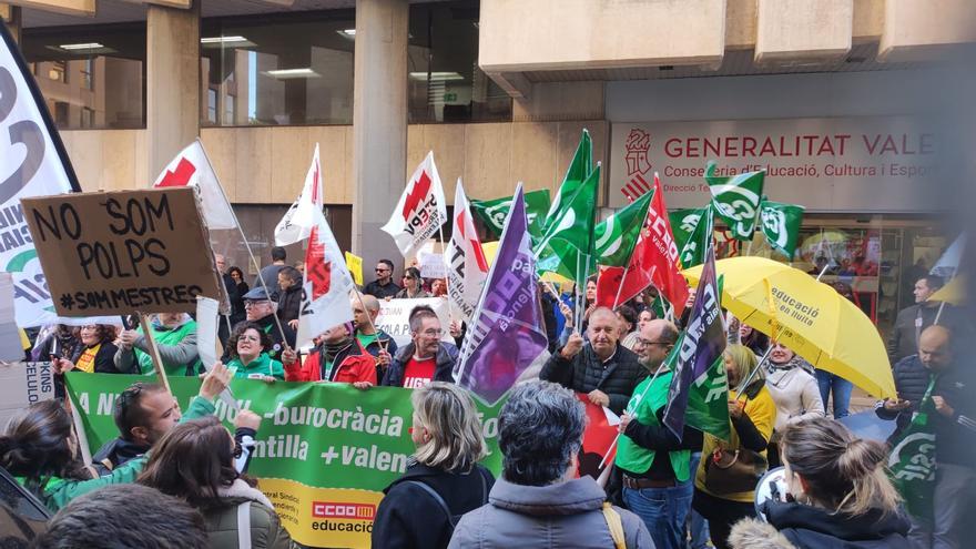 Los profesores de la provincia de Alicante han decidido parar este jueves y ausentarse de las aulas. Lo han hecho para reclamar un aumento salarial, el refuerzo de las plantillas y la derogación de la Ley de Libertad Educativa del Consell, con tal de recuperar el modelo anterior de la enseñanza en valenciano.