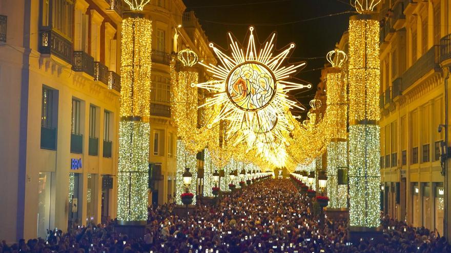 Miles de malagueños llenan el Centro Histórico para el encendido de las luces de Navidad 2025