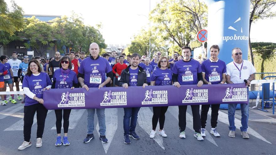 Alicante se ha volcado este domingo con la Carrera de las Ciudades contra el Cáncer de Páncreas, una prueba solidaria que ha reunido a más de 2.500 participantes entre corredores, practicantes de marcha nórdica y andarines. La iniciativa, impulsada por la Asociación Cáncer de Páncreas (Acanpan), la Asociación Española de Pancreatología (Aespanc), la Asociación Española de Gastroenterología (Aeg) y organizada por el Grupo Brotons, ha teñido de morado el entorno del estadio Joaquín Villar, punto de salida y llegada del recorrido de cinco kilómetros.