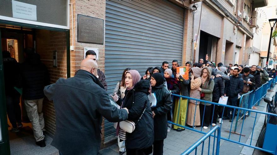Menor afluencia de la prevista en una nueva jornada de colas en el Consulado de Argelia en Alicante por la regularización de inmigrantes: "Hoy no es nada"
