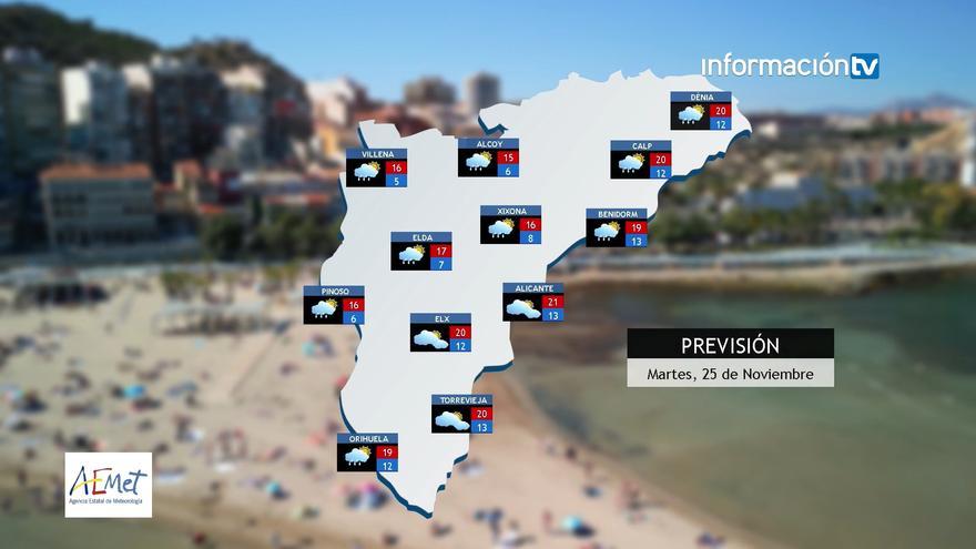 La provincia de Alicante verá podría tener esta mañana precipitaciones débiles y dispersas aunque según avance el día se irá despejando. Según la Agencia Estatal de Meteorología (AEMET) la provincia tendrá hoy temperaturas mínimas en descenso y máximas con pocos cambios.
