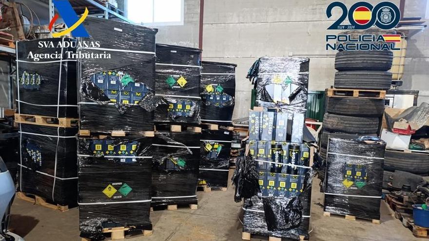 Siete personas han sido detenidas en una operación que ha permitido intervenir 2.500.000 de cigarrillos de contrabando en un camión tráiler y 5.200 litros de gas de la risa durante un registro en una nave industrial de Málaga.