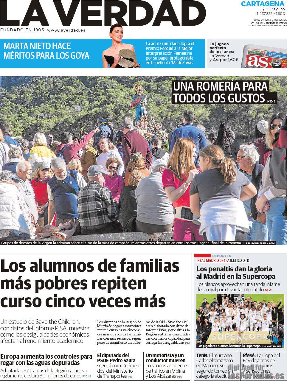 Portada del periodico La Verdad Cartagena: