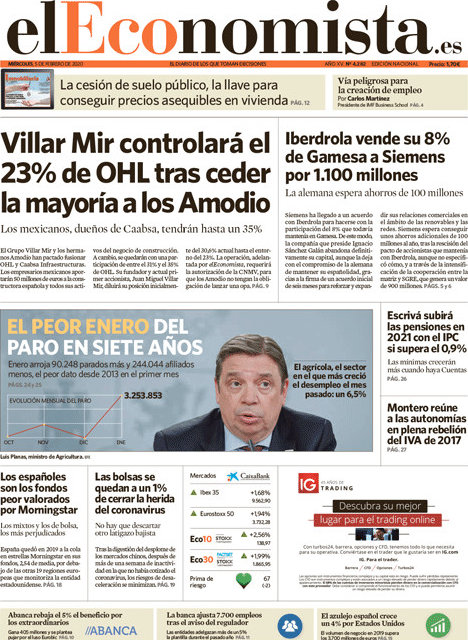 Portada del periodico El Economista: