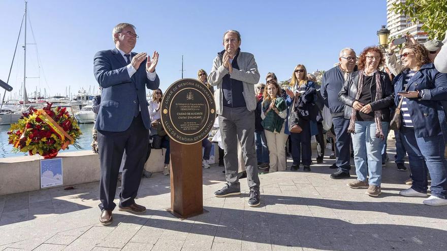 A vueltas con los símbolos para representar la memoria democrática en Alicante. Después de la celebración de los actos de este sábado en los que se declaró la ciudad como “Lugar de Memoria Democrática”, reconocimiento que hasta ahora sólo había recibido la localidad vasca de Gernika, dos de las tres placas previstas para dar fe de esta distinción continuaban este lunes sin estar instaladas.