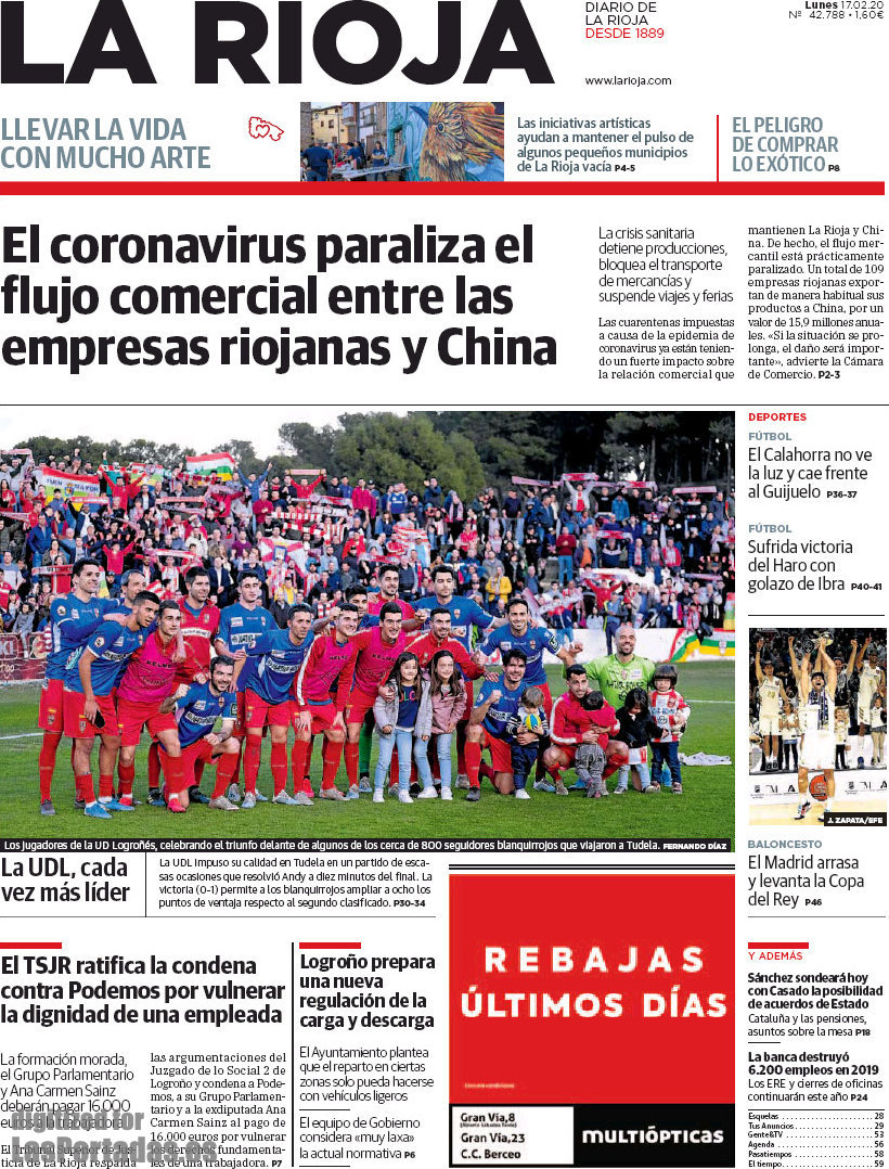 Portada del periodico La Rioja: