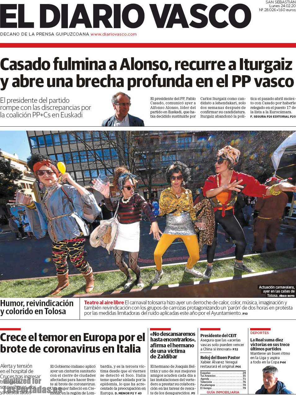 Portada del periodico El Diario Vasco: