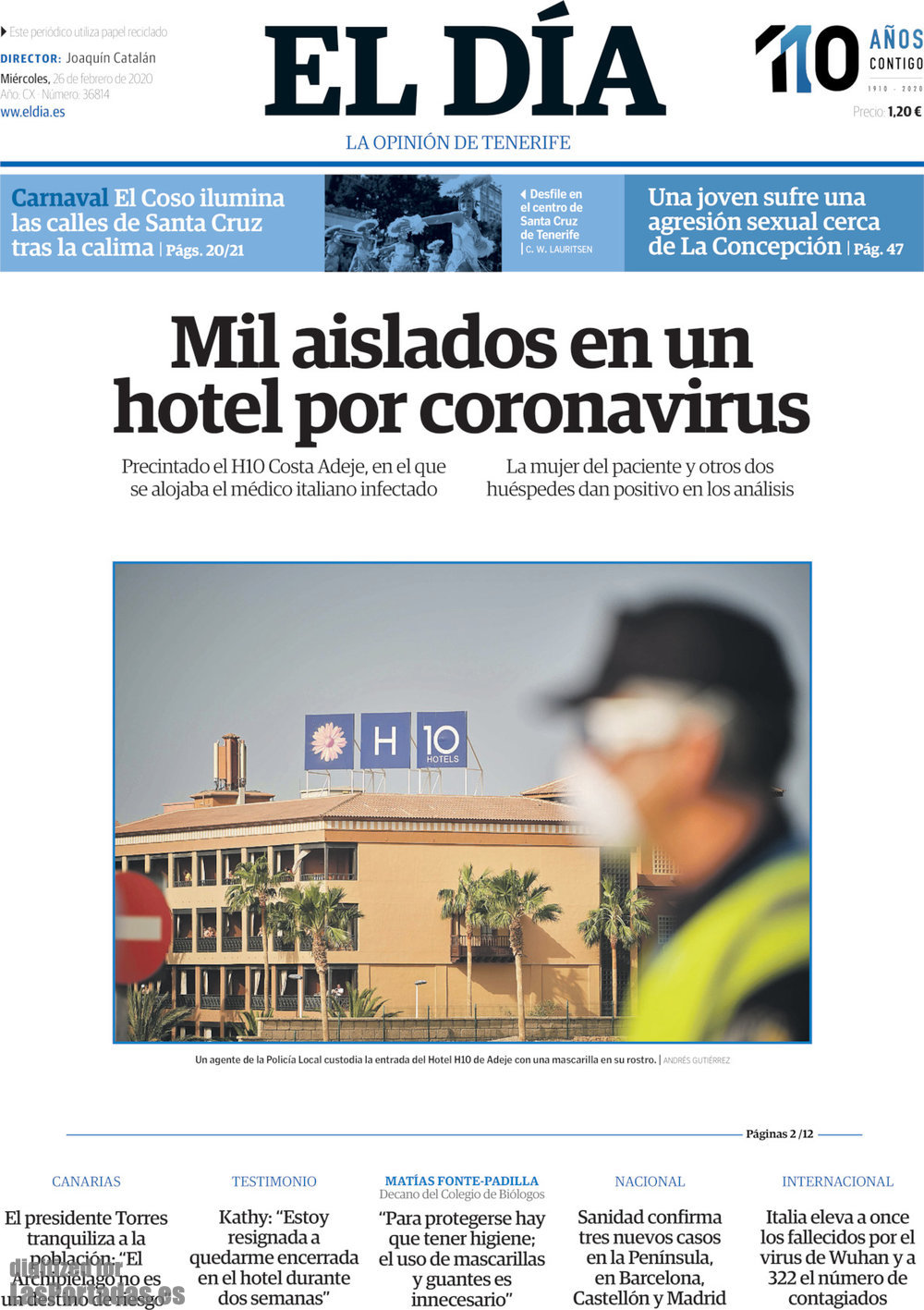 Portada del periodico El Día: