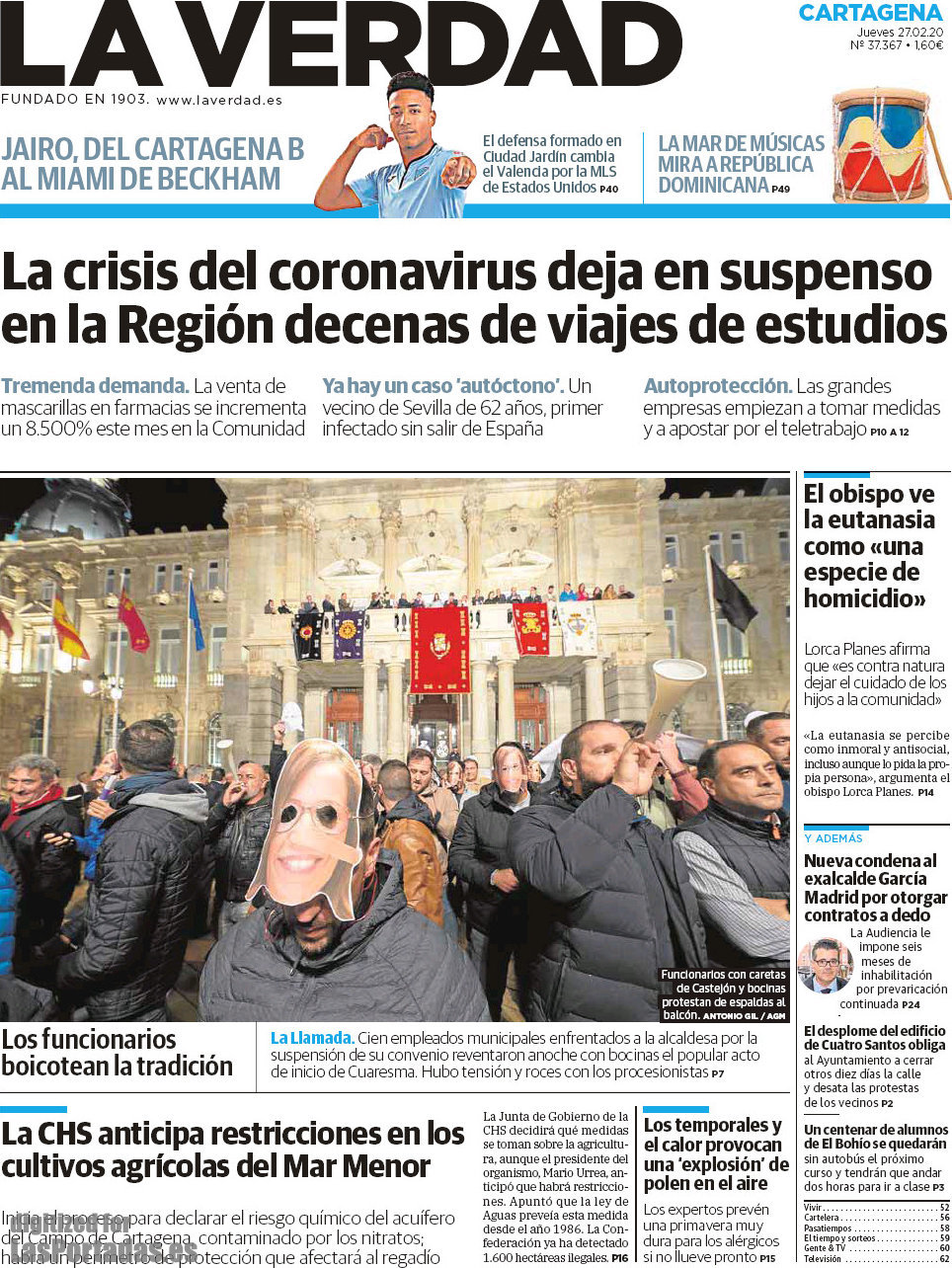 Portada del periodico La Verdad Cartagena: