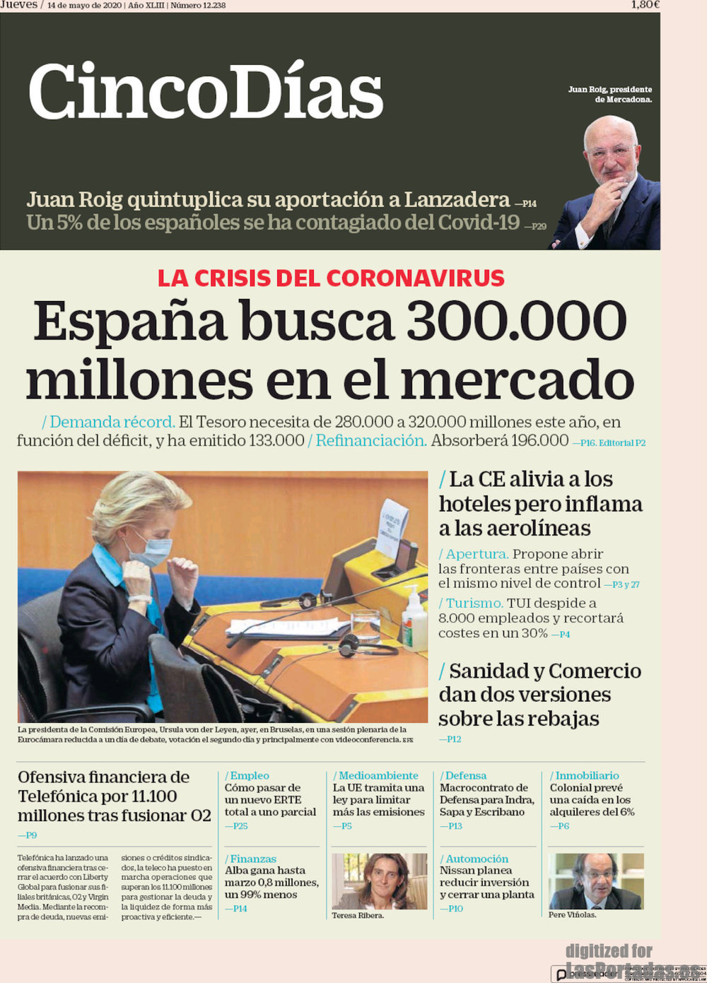 Portada del periodico Cinco Días: