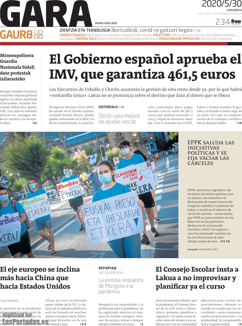 Portada del periodico Gara: