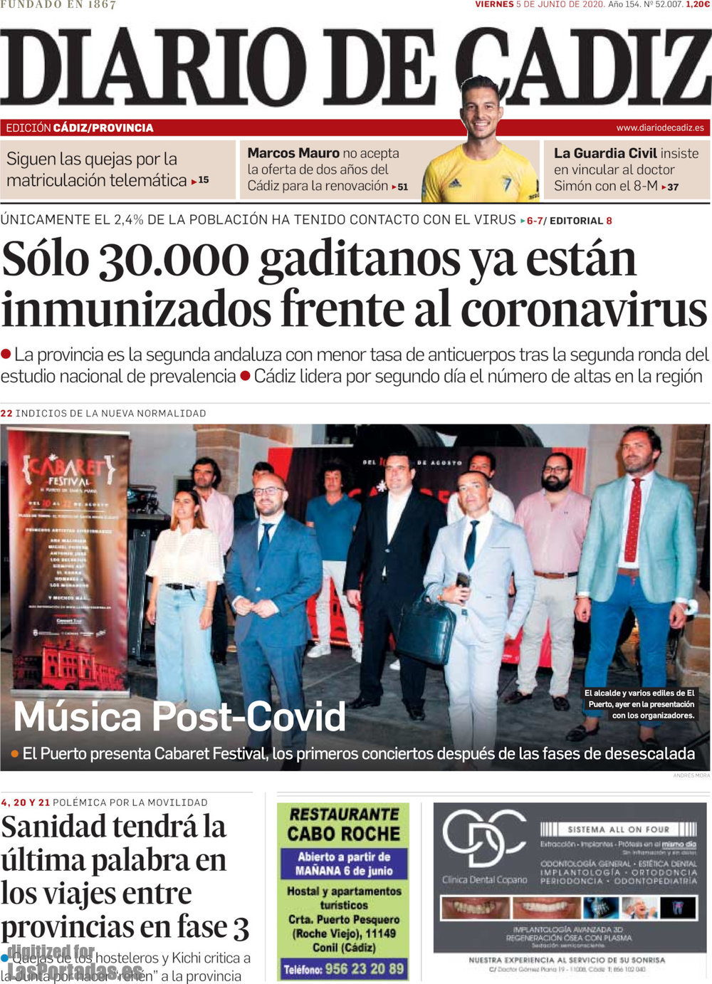Portada del periodico Diario de Cádiz:
