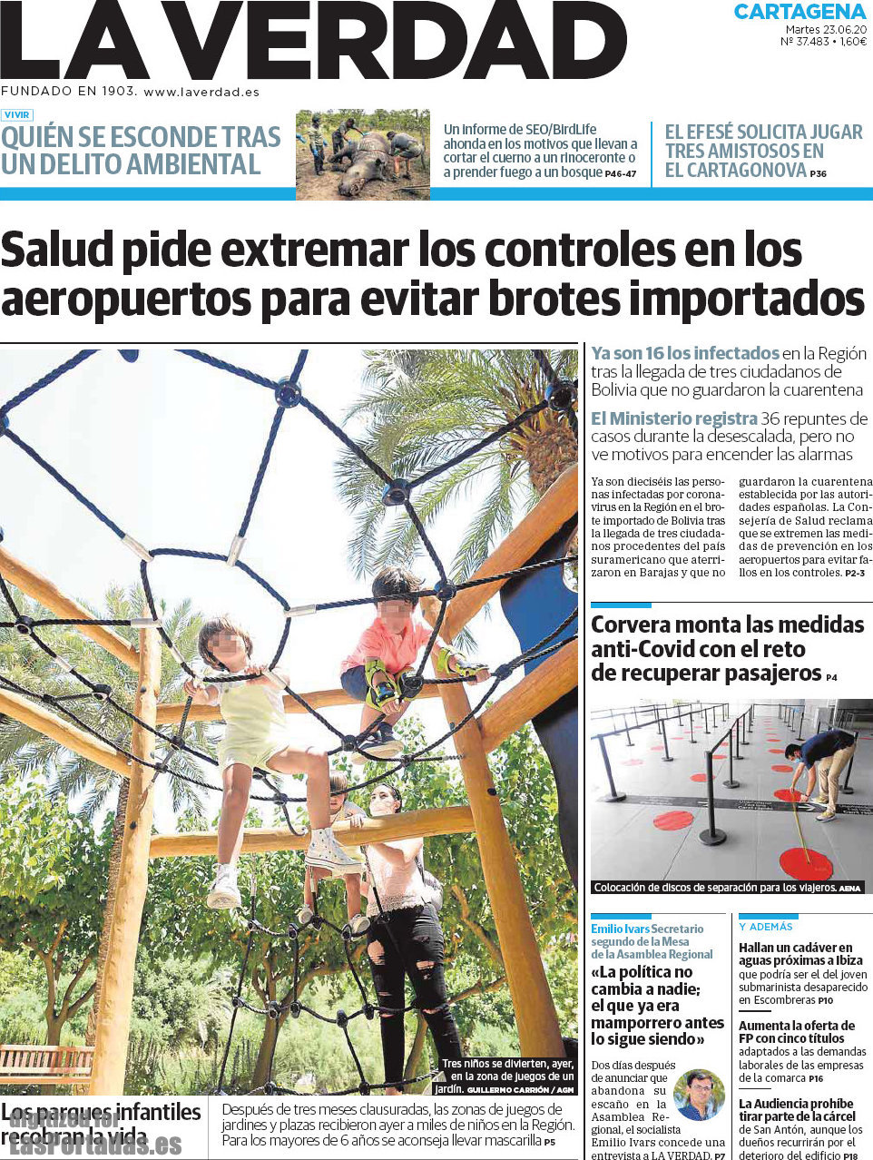 Portada del periodico La Verdad Cartagena: