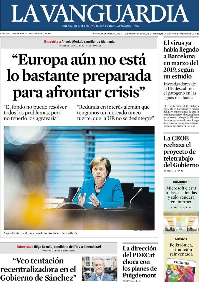 Portada del periodico La Vanguardia: