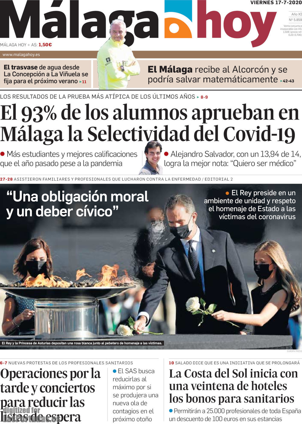 Portada del periodico Malaga Hoy: