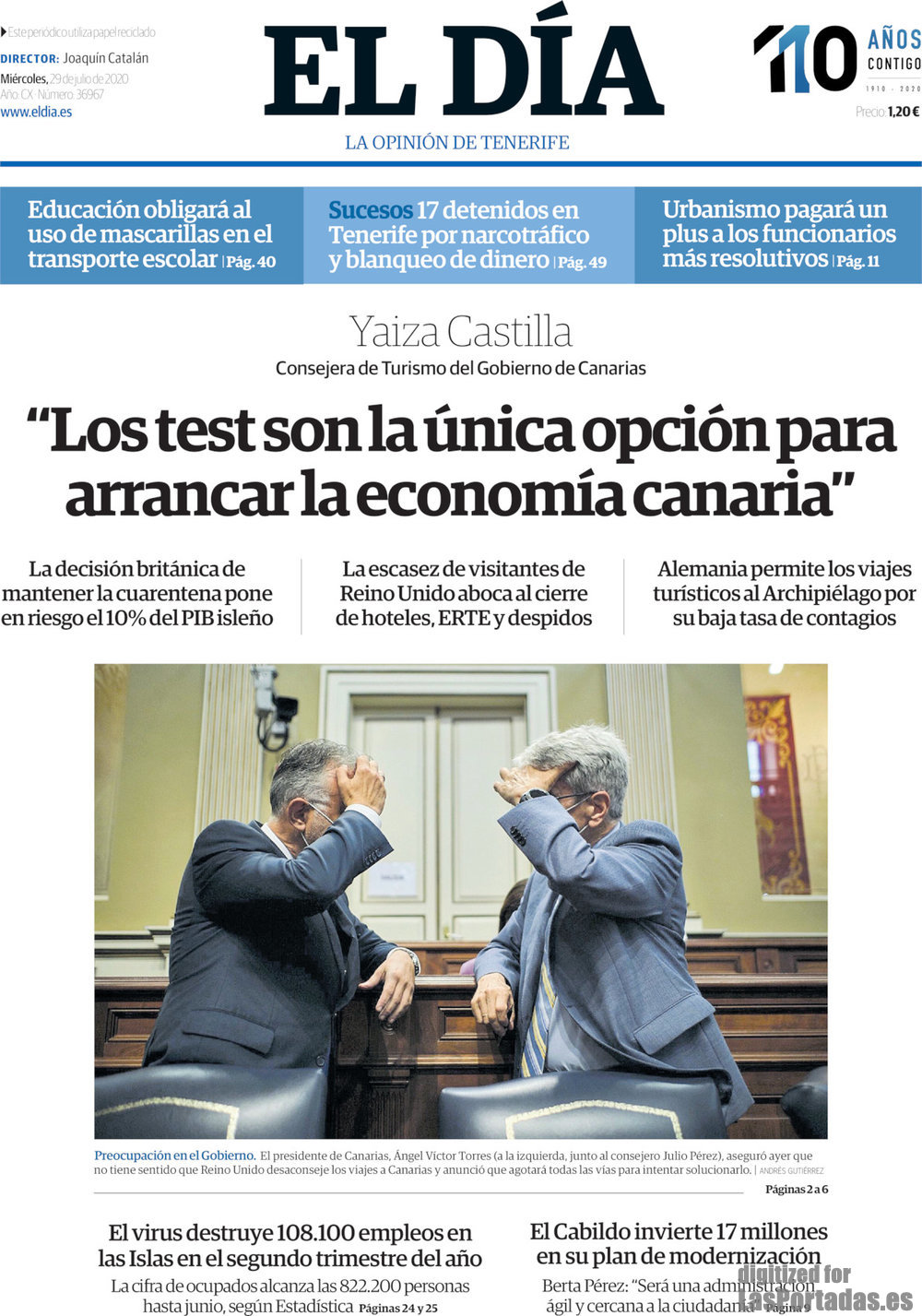 Portada del periodico El Día: