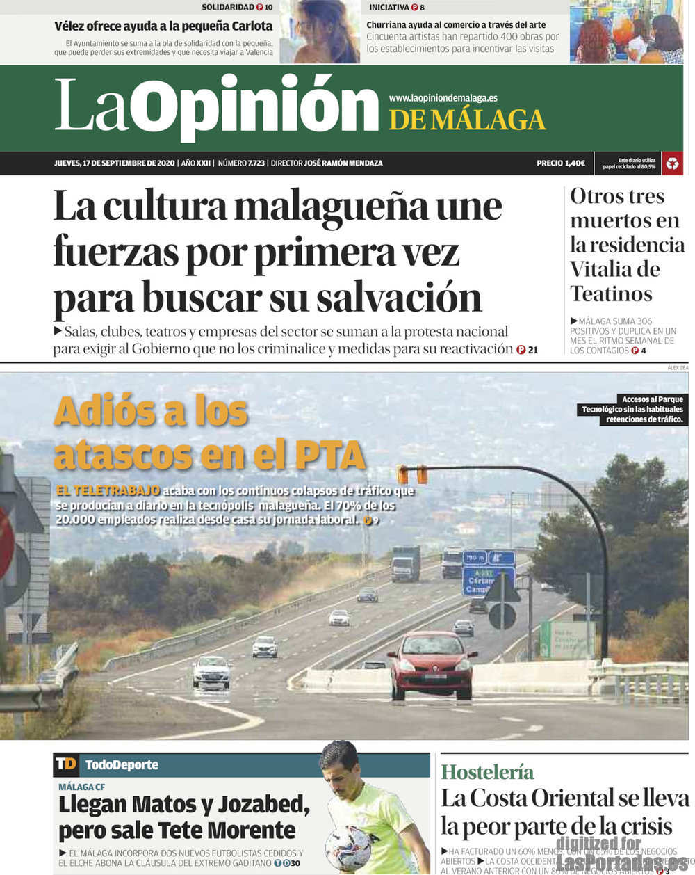 Portada del periodico La Opinión de Málaga: