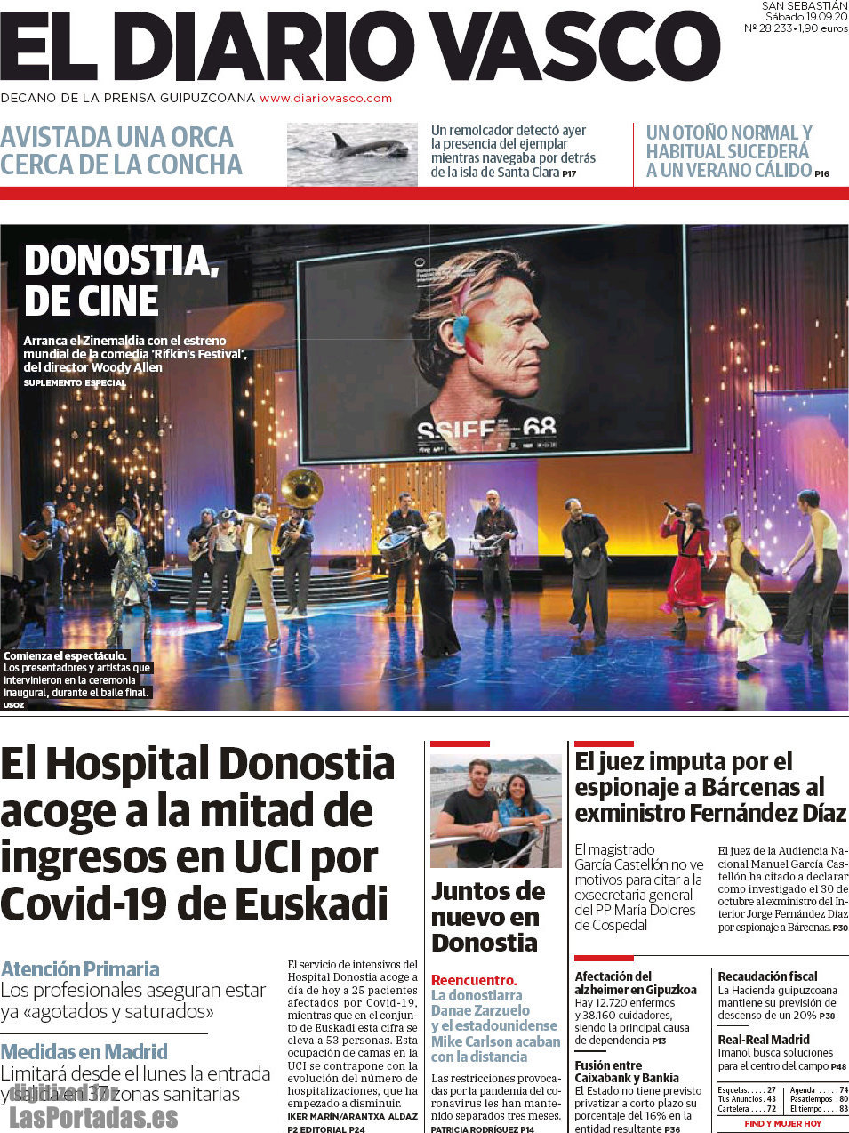 Portada del periodico El Diario Vasco: