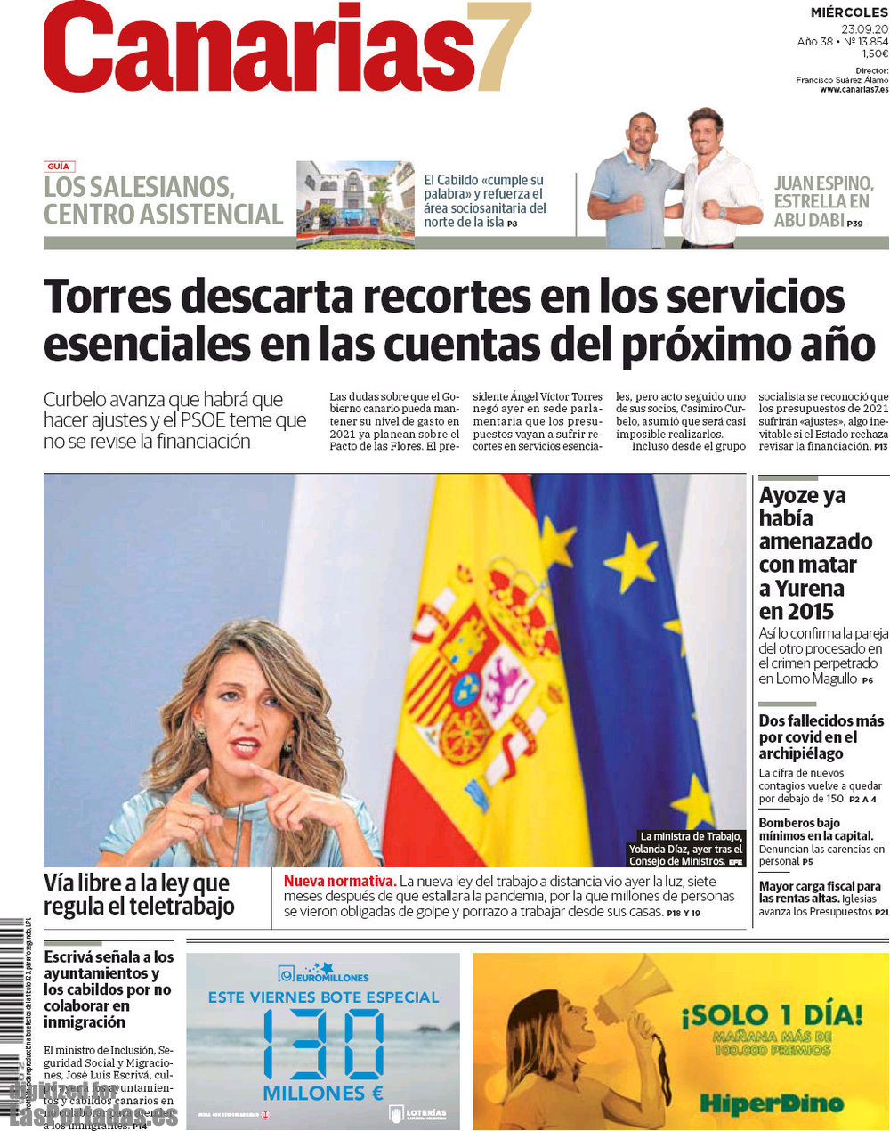 Portada del periodico Canarias7:
