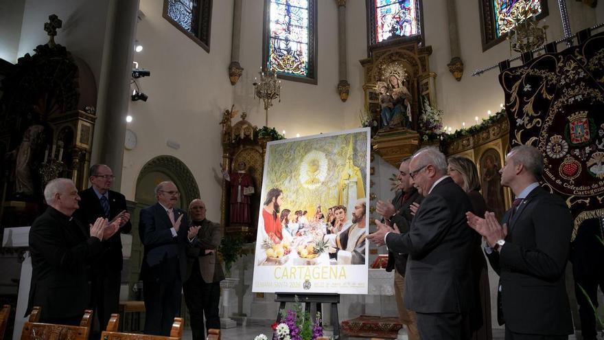 La Iglesia de San Antonio María Claret, conocida popularmente como 'Los Padres', acogía este sábado la presentación oficial del cartel de la Semana Santa de Cartagena 2026. En un templo abarrotado de fieles, cofrades y autoridades, se revelaba la obra ganadora del concurso, titulada 'Cenáculo Californio', una creación de Julián Contreras que tiene como protagonista al grupo escultórico de la Santa Cena y el Santísimo Cristo de los Mineros, informa el Consistorio cartagenero en su web.