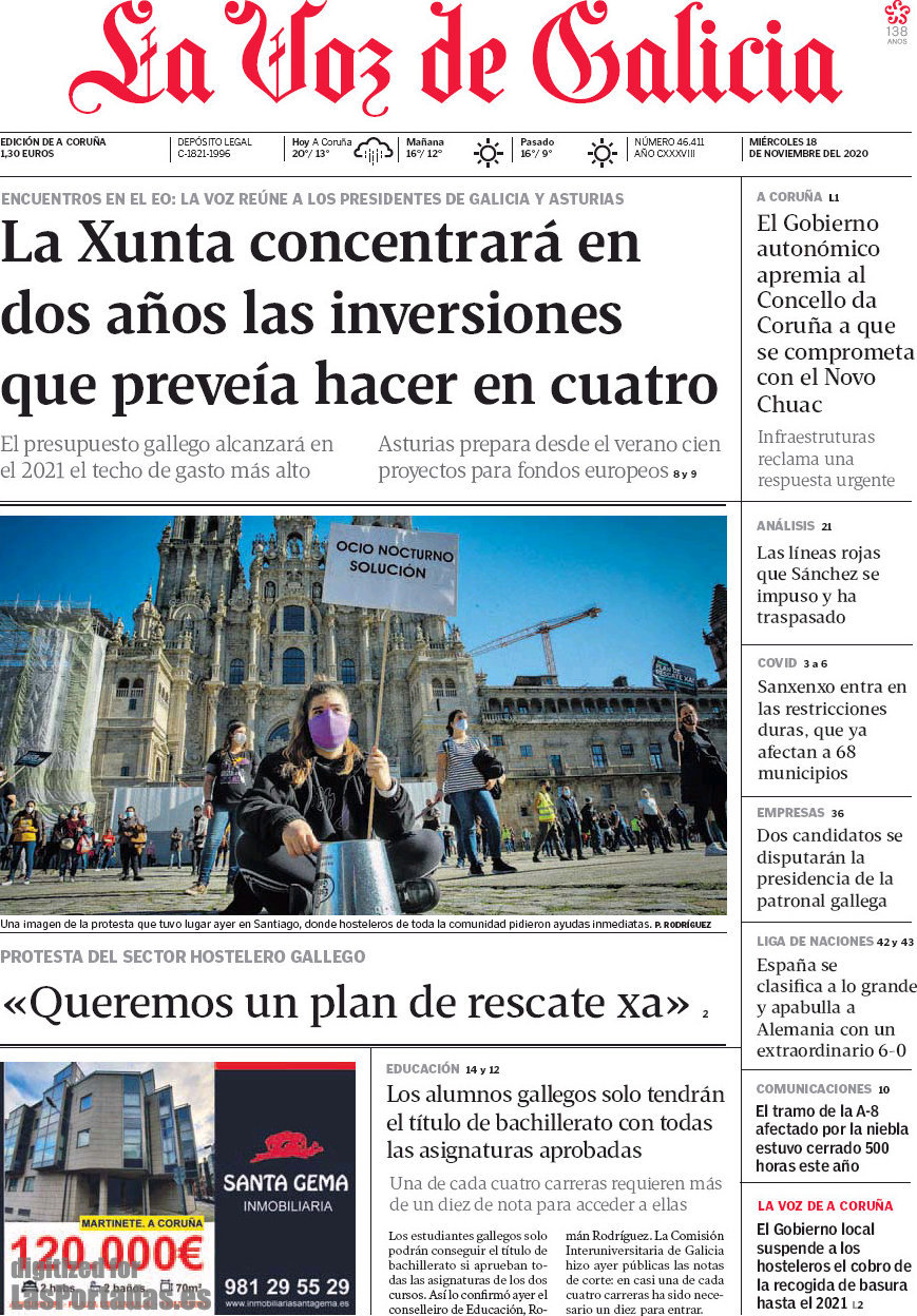 Portada del periodico La Voz de Galicia: