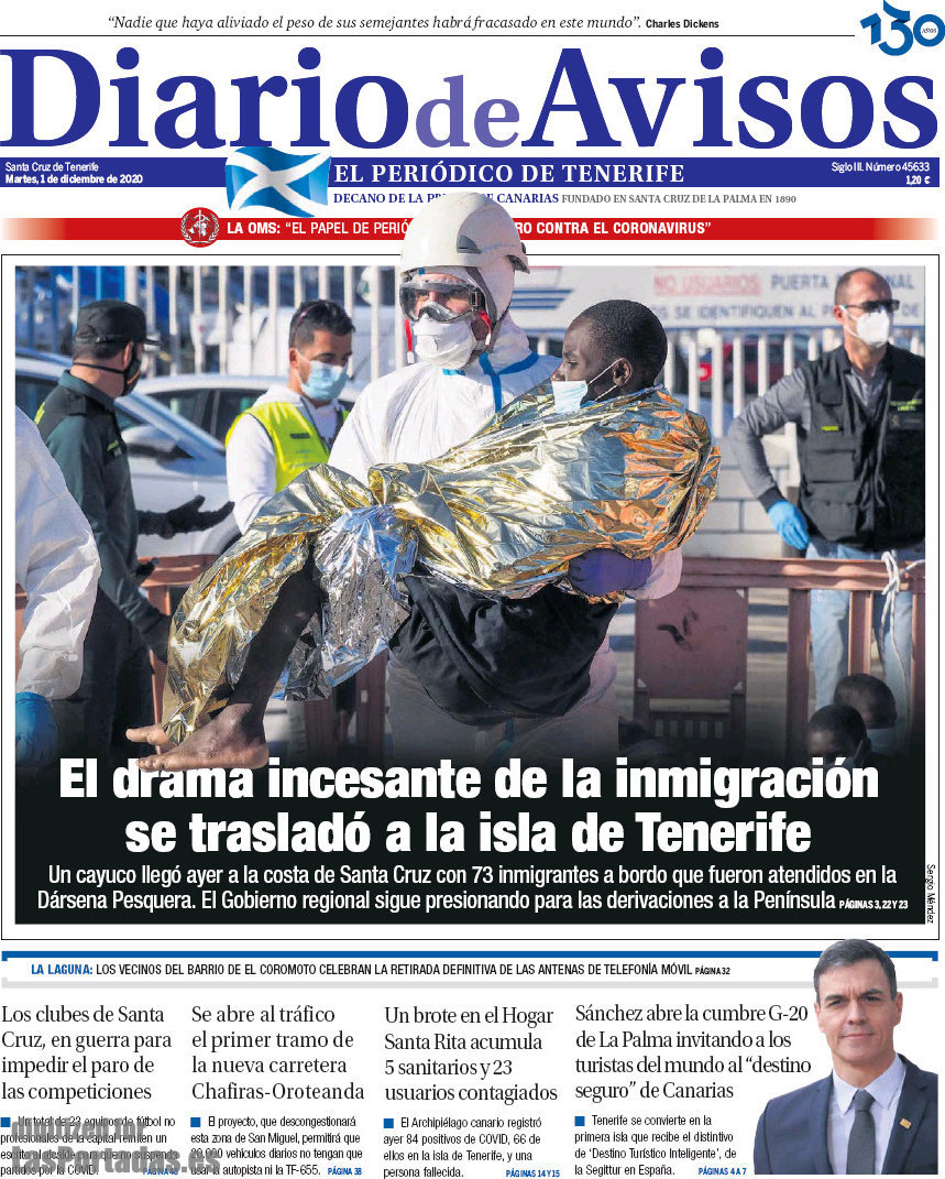 Portada del periodico Diario de Avisos:
