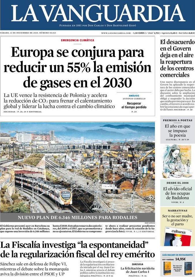 Portada del periodico La Vanguardia: