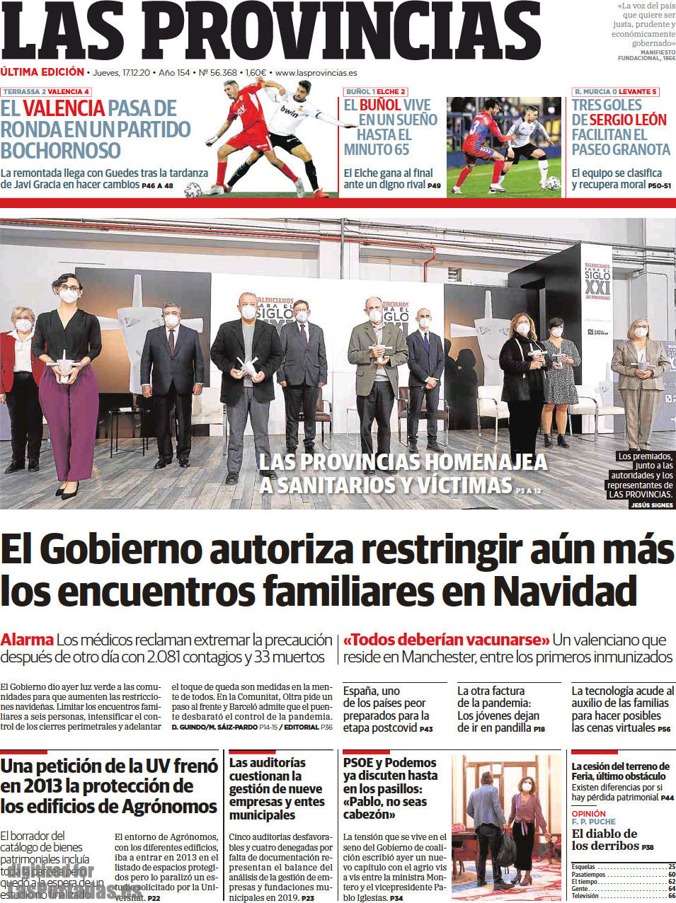 Portada del periodico Las Provincias: