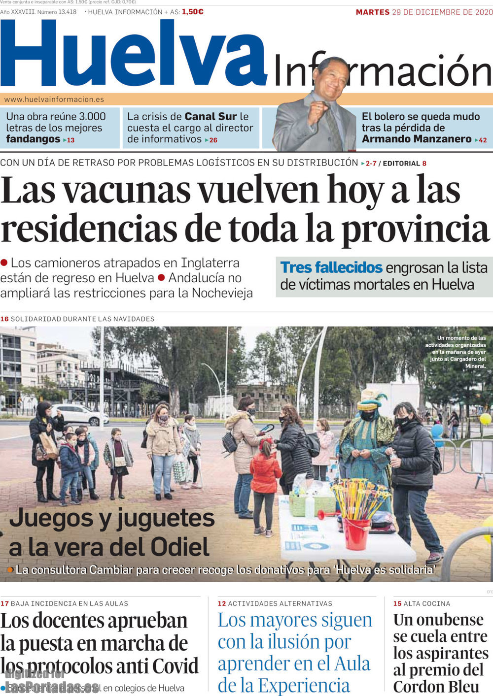 Portada del periodico Huelva Información: