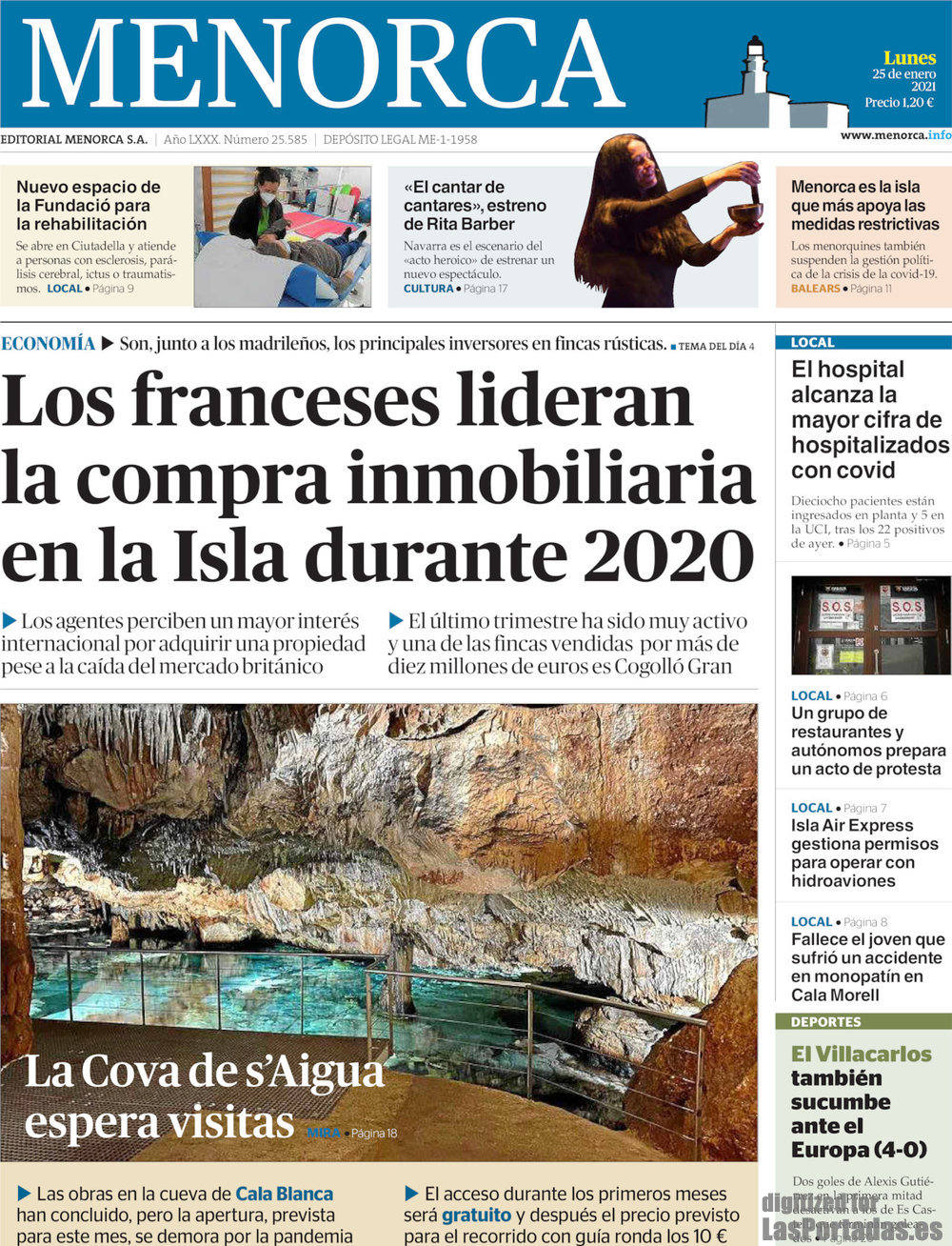 Portada del periodico Menorca: