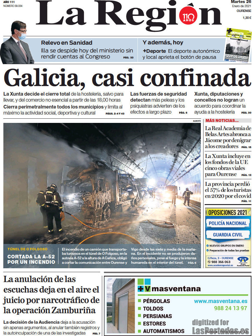 Portada del periodico La Región: