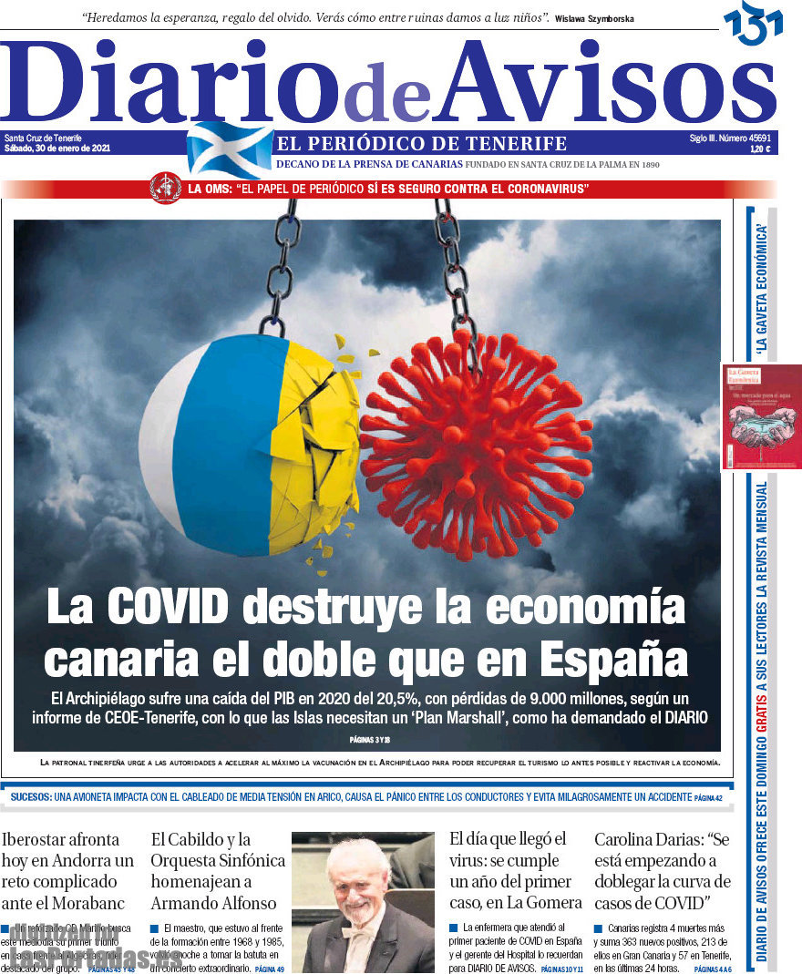 Portada del periodico Diario de Avisos: