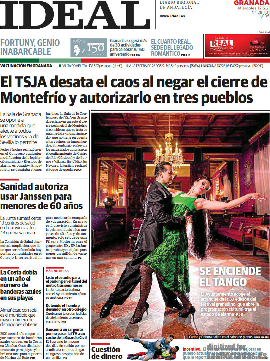 Portada del periodico Ideal: