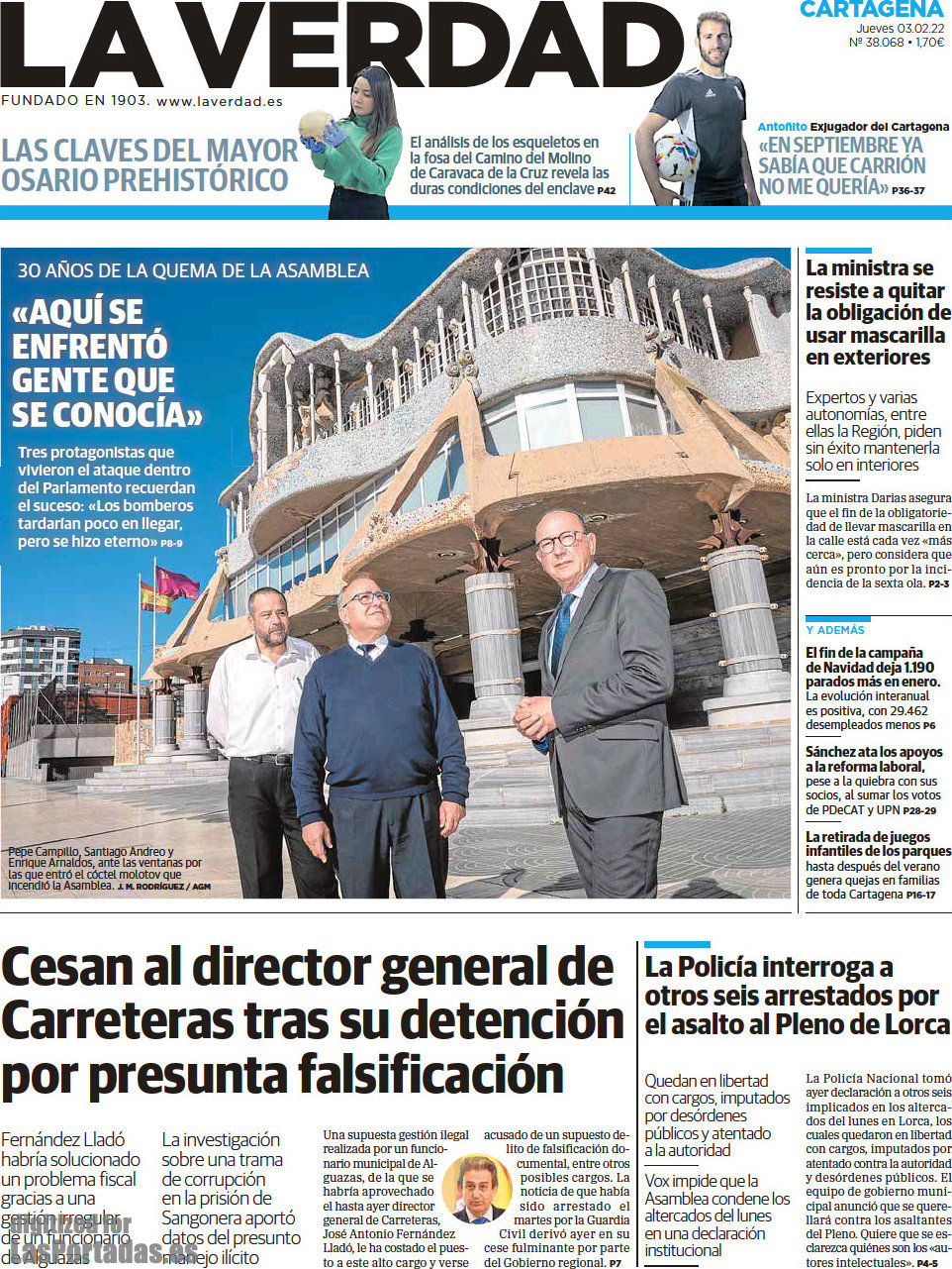 Portada del periodico La Verdad Cartagena: