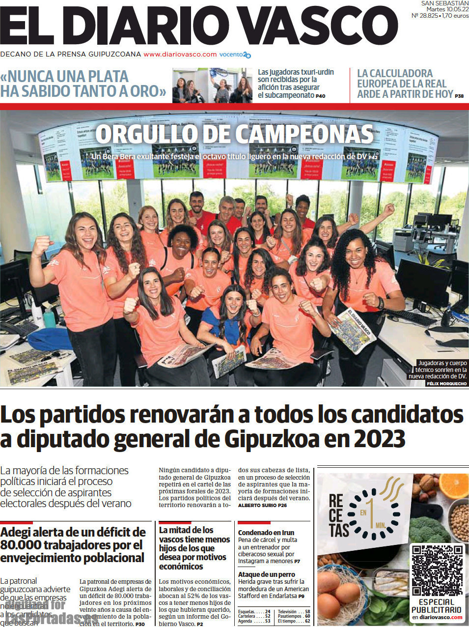 Portada del periodico El Diario Vasco: