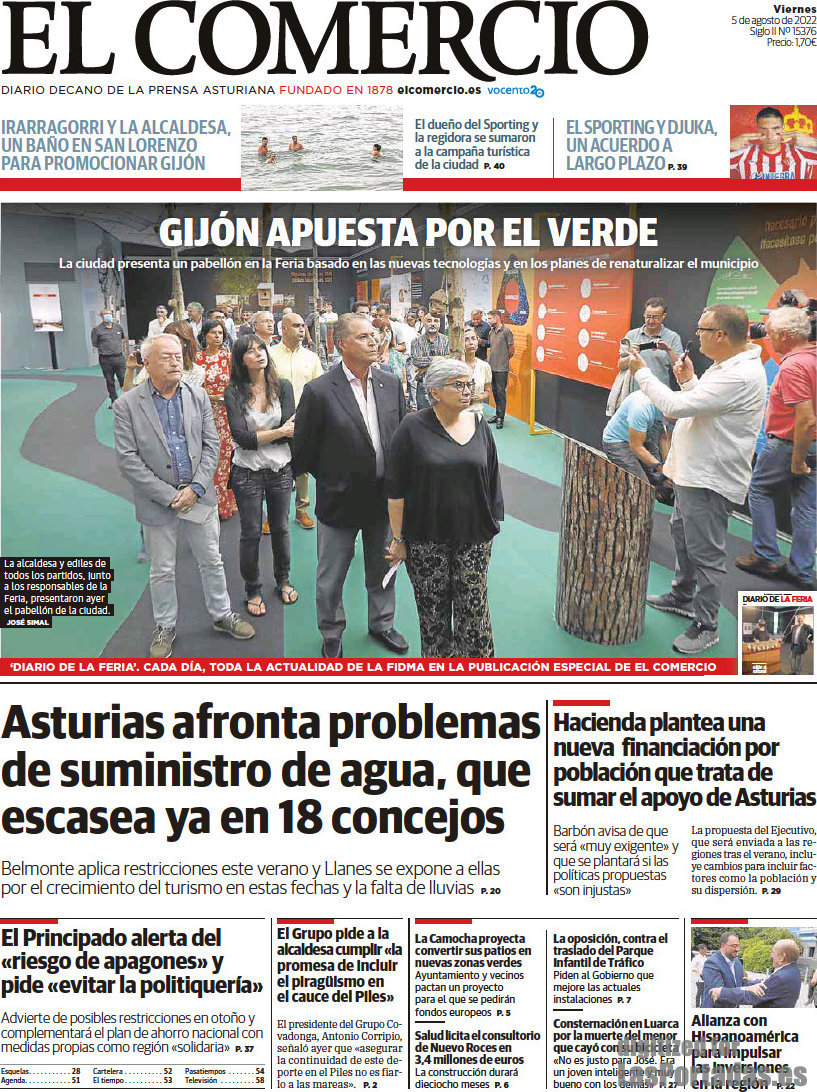Portada del periodico El Comercio: